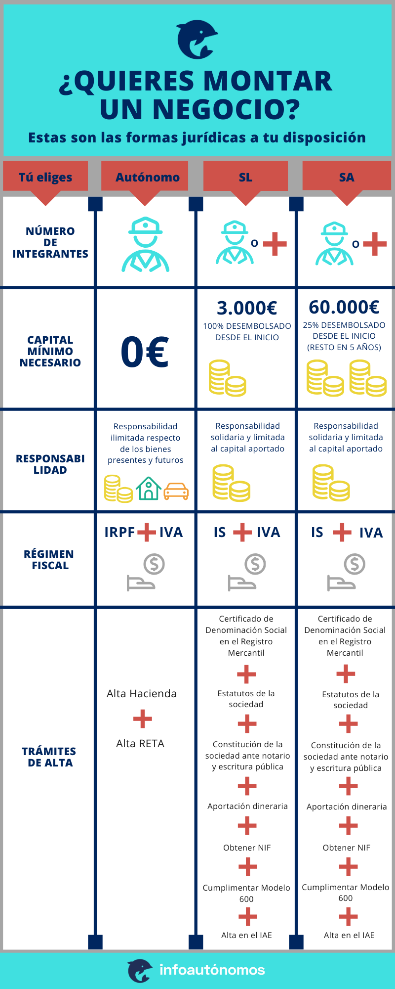 Una infografía sobre las Formas jurídicas para montar un negocio. Vía Infoautónomos