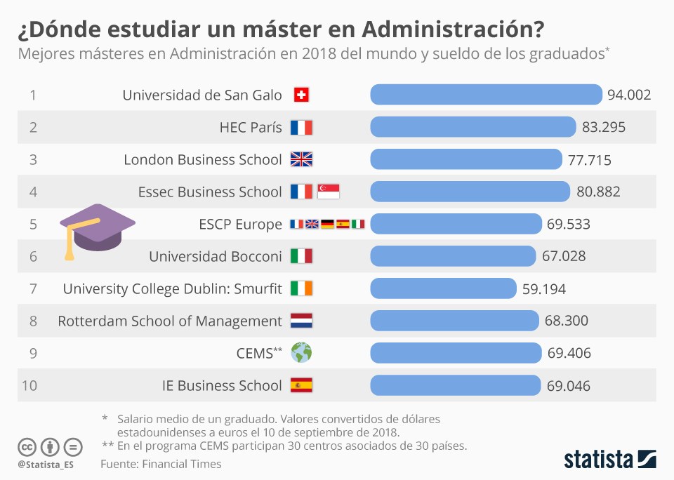 Una infografía con los 10 mejores MBA del mundo. Vía Statista