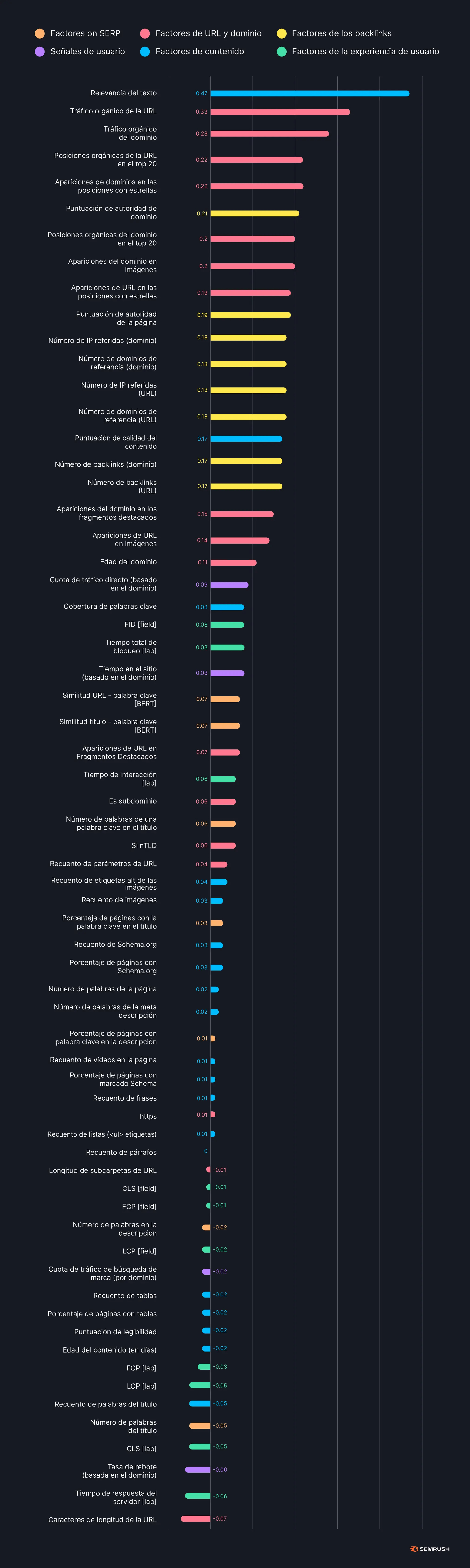 una infografía sobre los factores de posicionamiento en Google. Vía Semrush