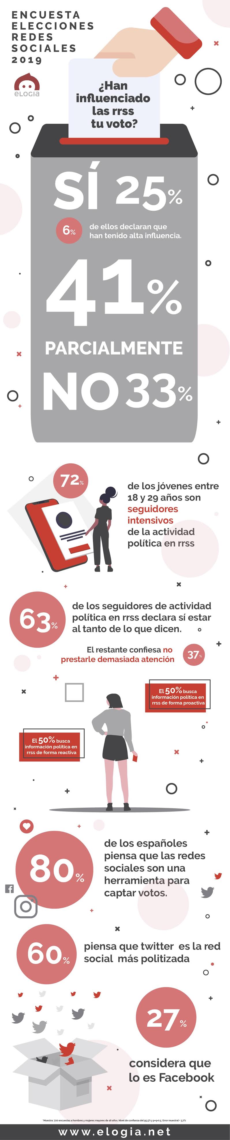 Una infografía sobre si ¿Influyen las redes sociales en las elecciones? Vía Elogia