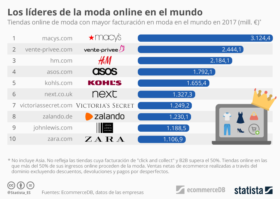 Una infografía con las 10 tiendas online de moda que mas facturan en el mundo. Vía Statista