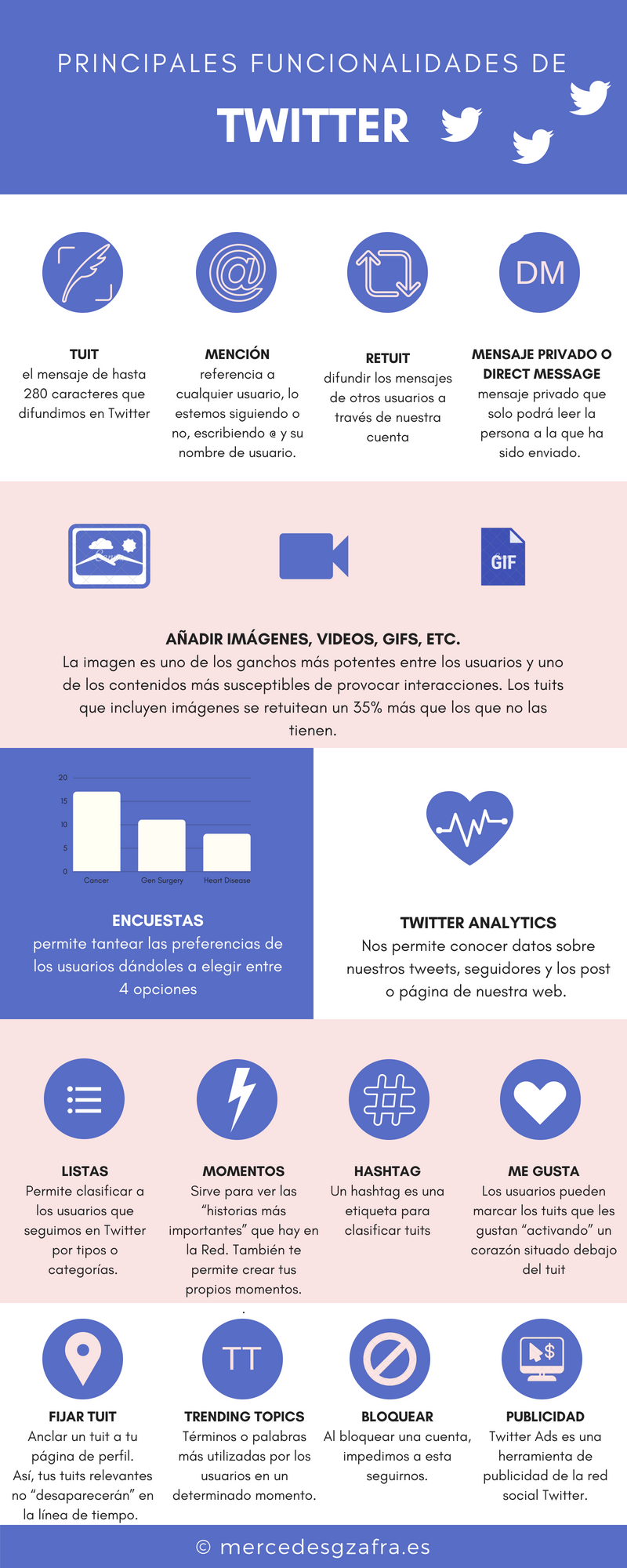 Principales funcionalidades de Twitter #infografia #infographic #socialmedia