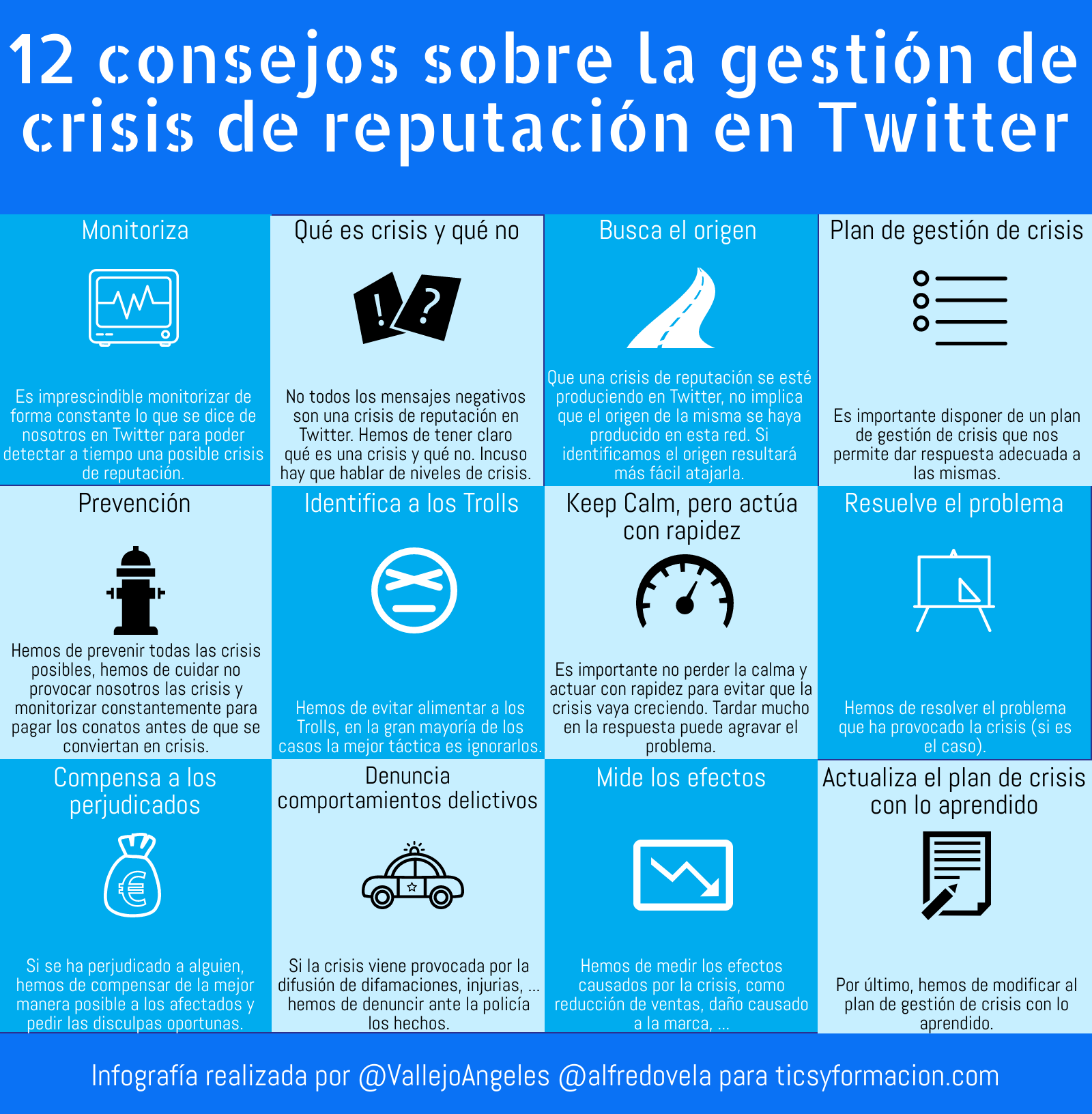Una infografía con 12 consejos sobre la Gestión de una Crisis en Twitter.